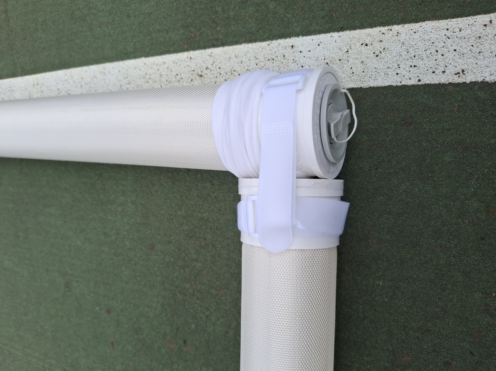 At less than 25lbs, it easily fits into our included 30" roller bag and comes with an optional rechargeable electric inflation and deflation pump. The pump and deflation roller are optional because generally only one pump/roller is needed per 2-3 courts per location.